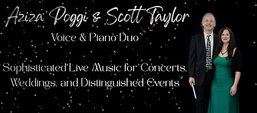 Aziza Poggi & Scott Taylor Voice & Piano Duo available for Sophisticated Live Music for Concerts, Weddings, and Distinguished Events: Visit here
